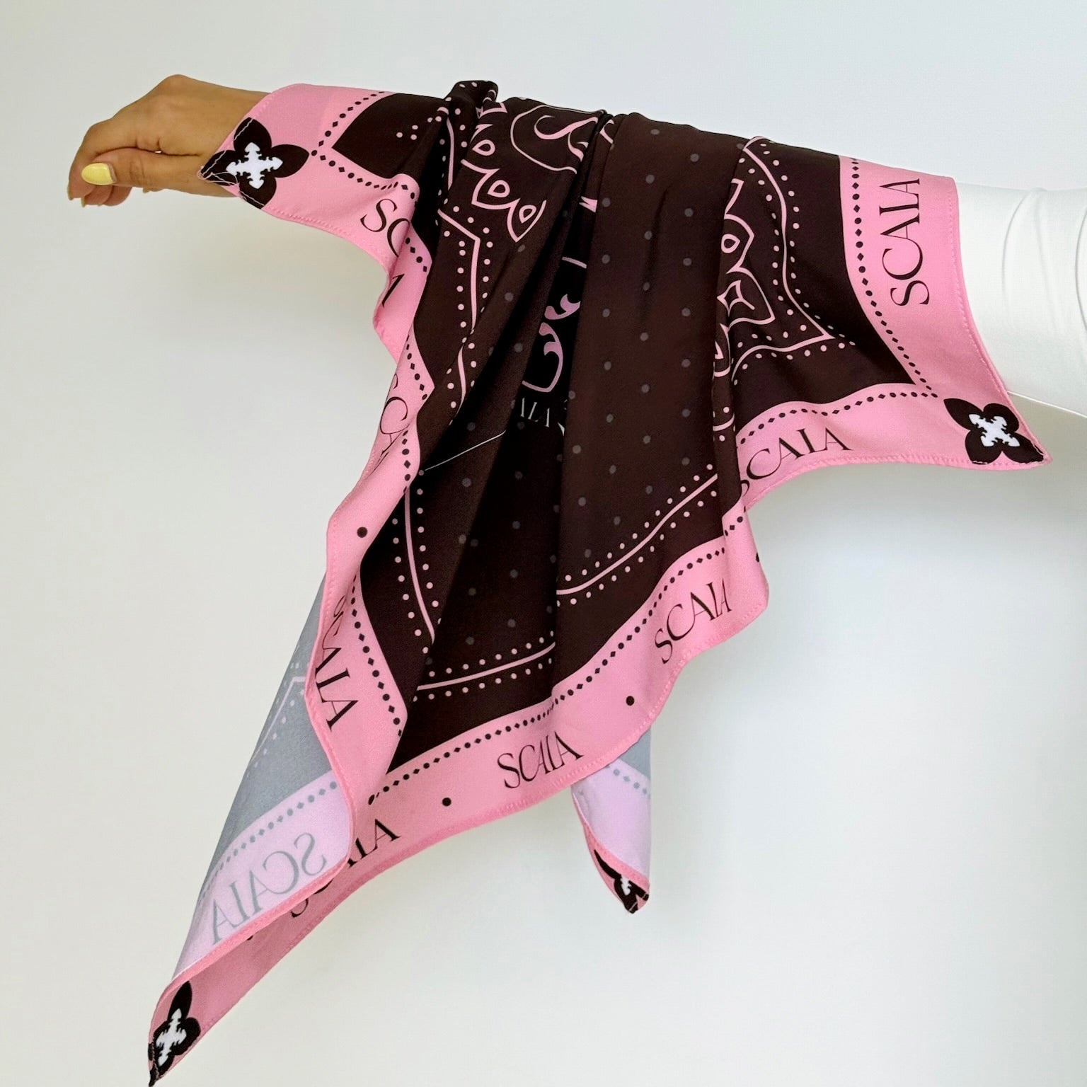 3 diseños de pañoletas únicos y exclusivos elaborados en seda de alta calidad.